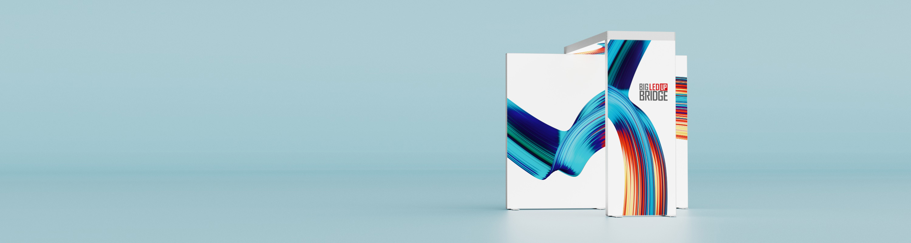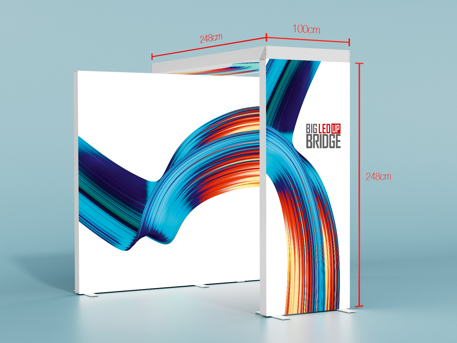 Die BIG LEDUP® Bridge ist eine innovative Lösung zur Verbindung eines freistehenden Rahmens (Breite: 100cm; Höhe: wahlweise 200cm, 230cm, 248cm oder 298cm) mit einem bestehenden BIG LEDUP® System. Dies erfolgt über einen oben liegenden Brückenrahmen mit ebenfalls 100cm Breite und einer Brückenlänge von 200cm, 230cm, 248cm oder 298cm.