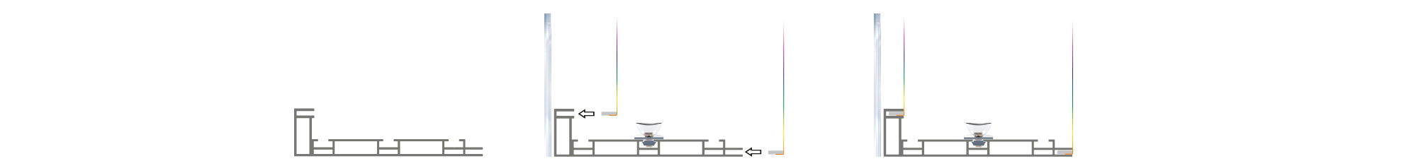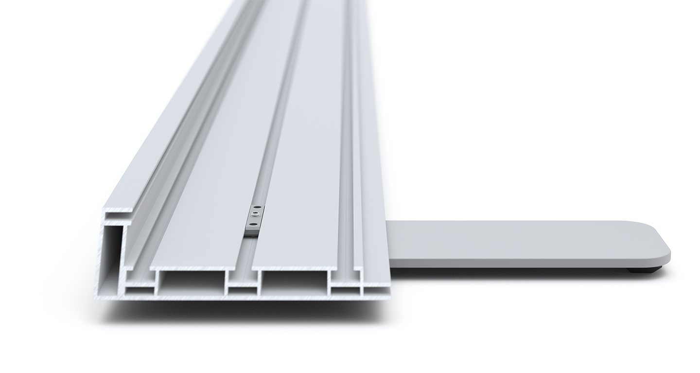 Einfacher Standfuß für freistehende Backload-Profile, ideal für die Platzierung neben Glasfenstern.