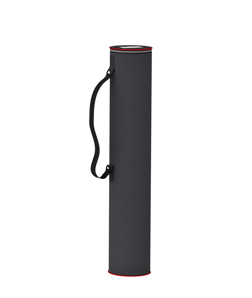 Das komplette Displaysystem Outdoor Penguin wird in einer schwarzen Transportrolle (Hardcase) mit Tragegurt geliefert. Verpackt misst das System 110 x 18 x 18 cm und wiegt inklusive Grafik ca. 7 kg.