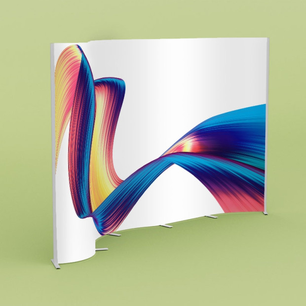 Das ISOframe Wave-System ist ein flexibel verformbares Ausstellungssystem mit Magnetpaneelausstattung.