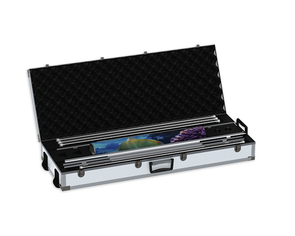 Das tragbare Lichtsäulen-System wird in einem Aluminium-Transportkoffer (cm x cm x cm) mit Rollen (Flightcase) geliefert.